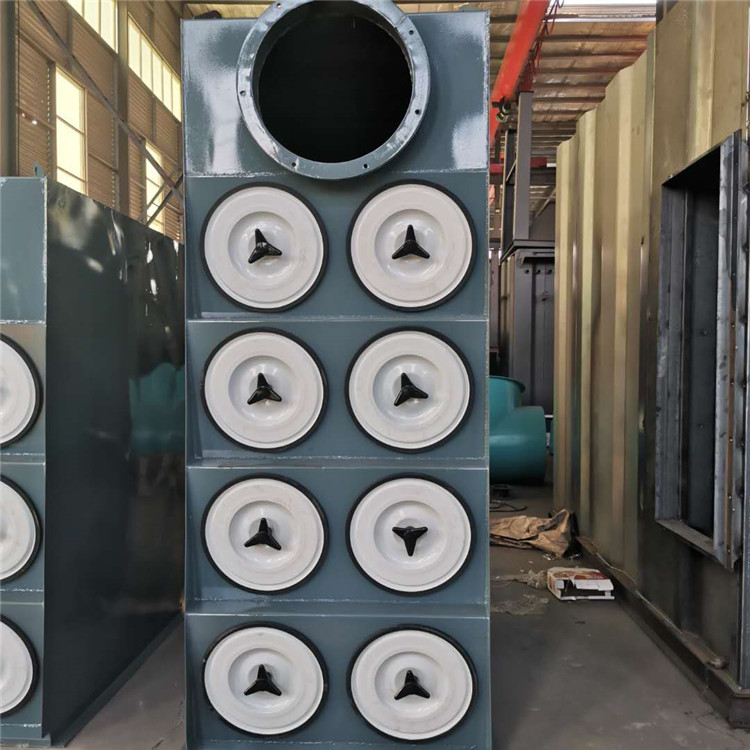 濾筒除塵器的過濾機理是一個綜合效應(yīng)的結(jié)果,如重力、慣性力、碰撞、靜電吸附、篩濾作用等。當(dāng)含煙塵、粉塵氣體經(jīng)進(jìn)氣口進(jìn)入除塵器,較大的粉塵顆粒因截面積的增大,風(fēng)速下降,而直接沉降;較小的煙塵、粉塵顆粒被濾筒阻留在濾筒表面。經(jīng)過濾筒的凈化氣體,經(jīng)出氣口,由引風(fēng)機排出。隨著過濾的不斷進(jìn)行,濾筒表面的煙塵、粉塵越積越多,濾筒阻力不斷升高,當(dāng)設(shè)備阻力達(dá)到的限值時,濾筒表面積聚的煙塵、粉塵需及時;在脈沖壓縮氣體的作用下,反吹濾筒,將附著在濾筒表面的煙塵、粉塵,使濾筒,周而復(fù)始,實現(xiàn)連續(xù)過濾,以設(shè)備連續(xù)穩(wěn)定運行。