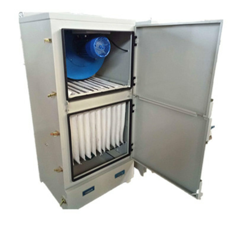 含塵氣體進(jìn)入箱體,由扁布袋過(guò)濾器進(jìn)行過(guò)濾,粉塵被阻留在濾袋外表面,已凈化的氣體通過(guò)濾袋進(jìn)入風(fēng)機(jī),由風(fēng)機(jī)吸入直接排入室內(nèi)(也可接管排至室外)。